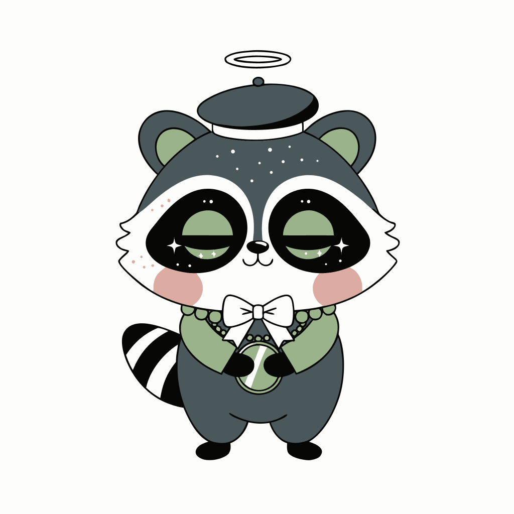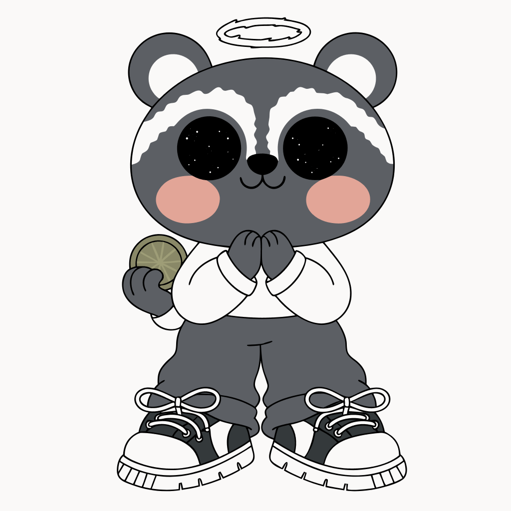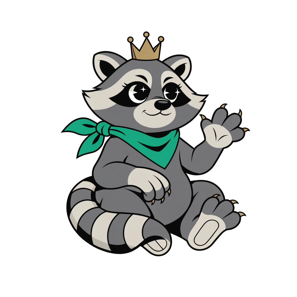 Then I started coding. And talking about the vision. That's when the eye rolls started. A community. A children's book. A game. My fiancée thought the whole idea was silly — but she showed up anyway. Sketch after sketch, iteration after iteration, about twenty of them, helping me land on the design for a raccoon in a golden crown and green bandana.